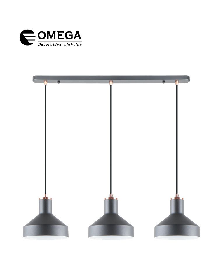 גוף תאורה תלוי דקורטיבי דגם לילך בסיס מלבני L780*W182*H1395 מ"מ הברגה 3XE27 צבע שחור OMEGA